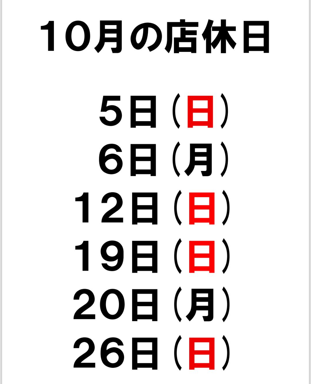 定休日の日曜日に加えて、6日(月)と20日(月)が店休日となります。