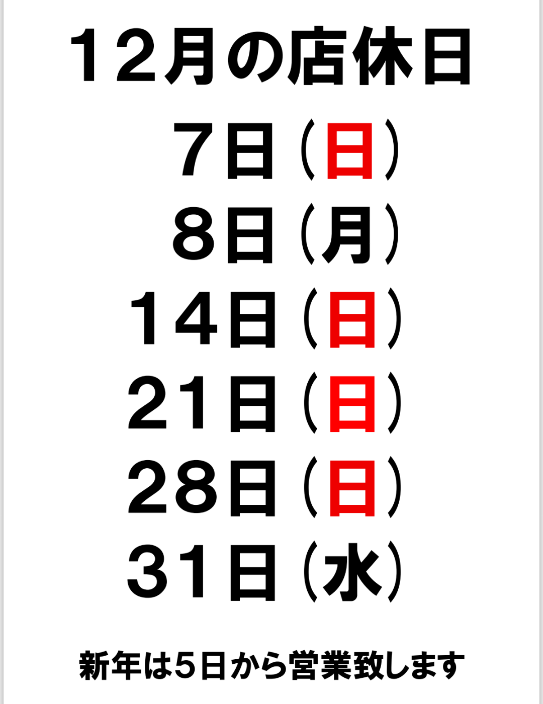 定休日の日曜日に加えて、8日(月)が店休日となります。